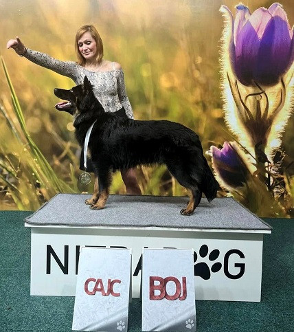 výrazne tmavý/čierny chodský pes s krásnou hlavou, milým výrazom a výborným pohybom. Keďže